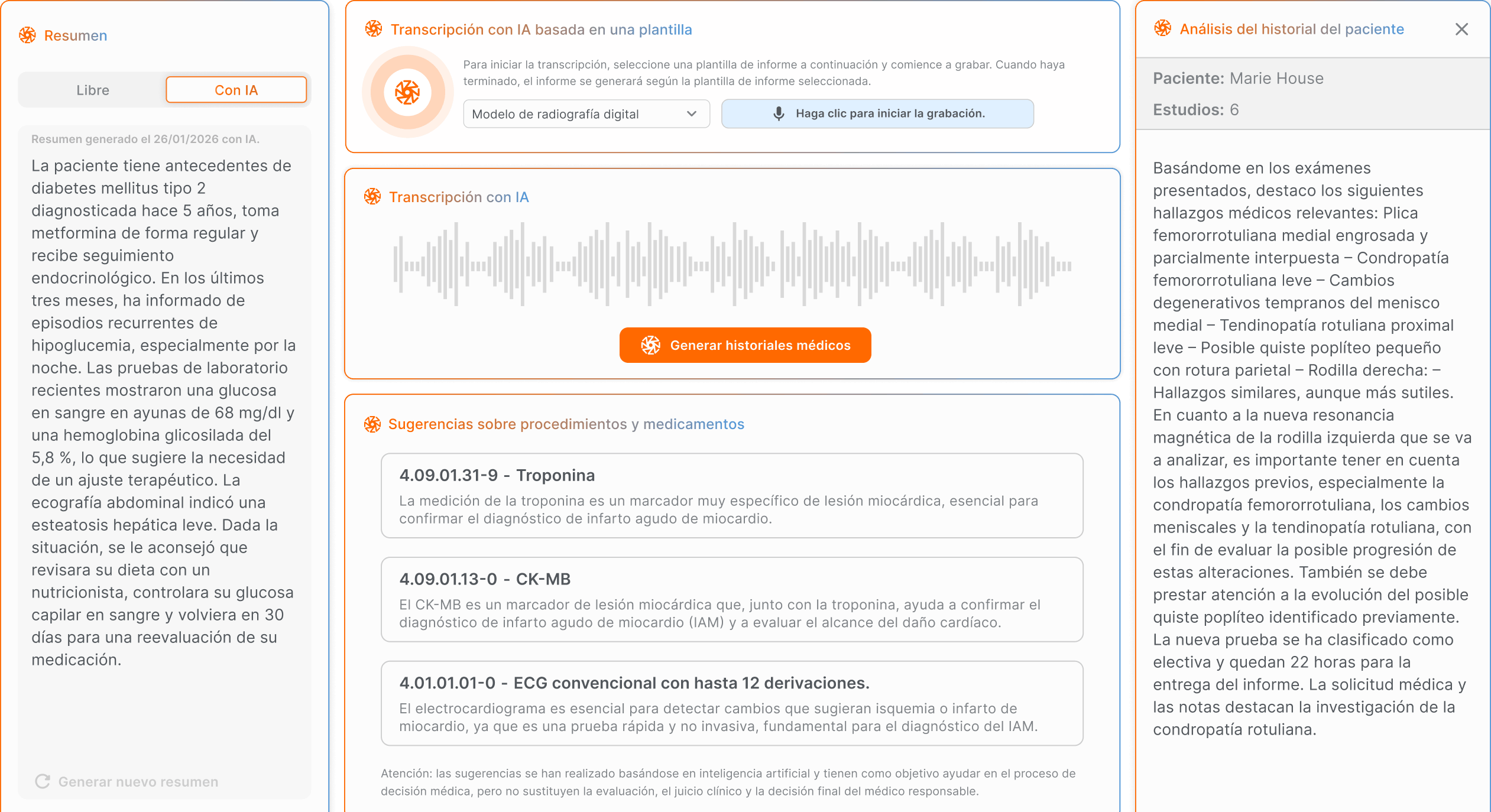 Activa la transcripción de audio de tu consulta directamente en la historia clínica.