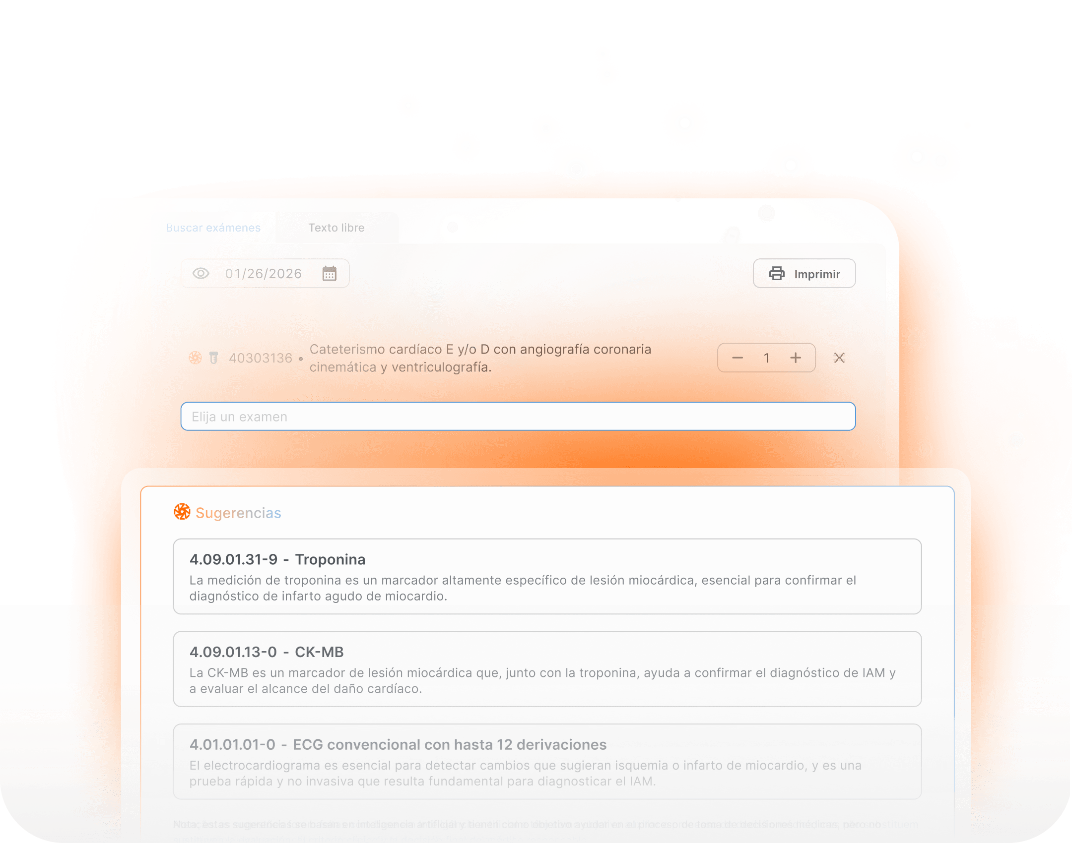 Sugerencias de procedimientos complementarios basadas en un análisis completo de la historia clínica y del historial del paciente, utilizando la tabla CBHPM para indicar exámenes e intervenciones relevantes, apoyando la toma de decisiones y optimizando la atención.